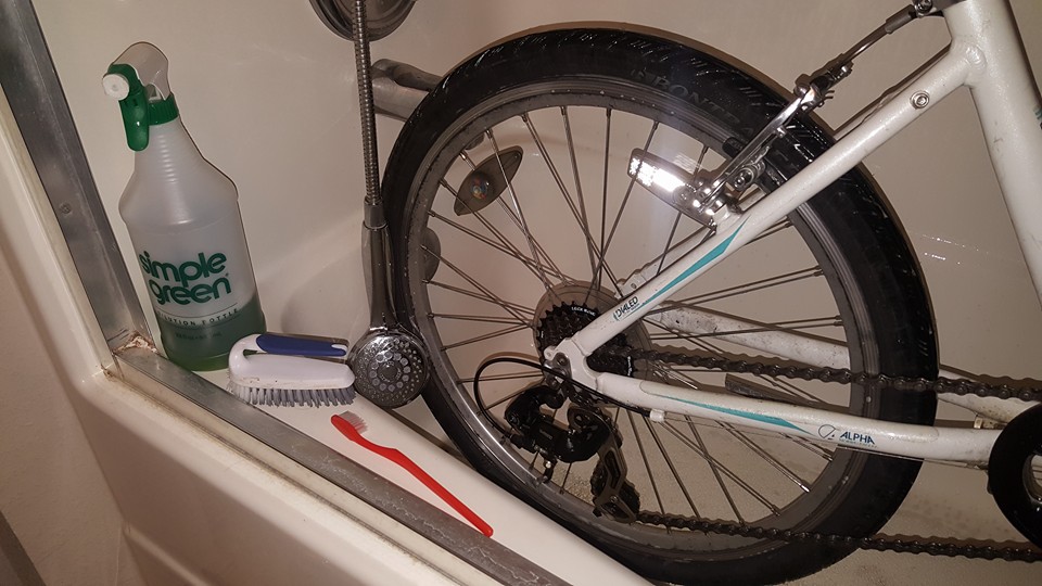 Genius. Thanks to Britney Schrag!! for the awesome DIY fix to cleaning your bike inside while keeping your apartment clean. – Love it!!