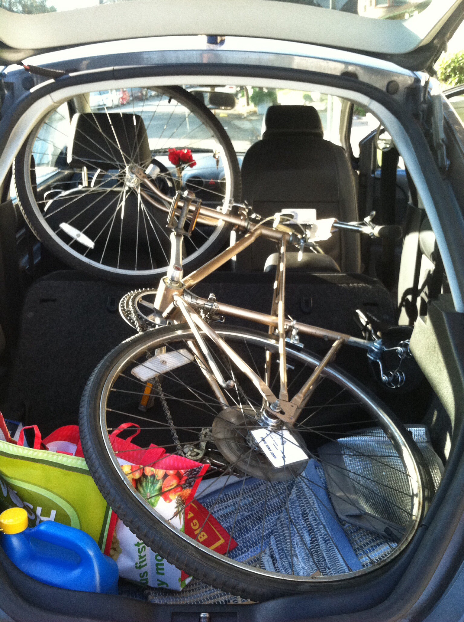 Have bike, will travel Didn’t think it was possible to fit an adult bicycle in a VW bug. Bike Tetris wins! Bicycle – 1 VW – 0 Share this: Click to share on Facebook (Opens in new window) Facebook Click to email a link to a friend (Opens in new window) Email Like Loading... Related Leave a comment Cancel reply Δ
